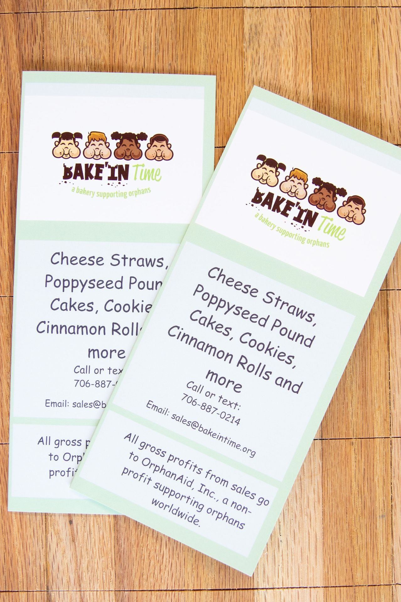 We are a bakery based out of Columbus, Georgia specializing in cheese straws and cream cheese poppyseed pound cakes. All gross profits (sales - material costs) from our sales go to OrphanAid, Inc. which is a non-profit 501 (c) (3) corporation supporting orphans worldwide.